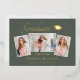 Beautiful 3 photo graduation announcement cards. Featuring modern text with elegant calligraphy script in your choice of gold, silver or rose foil. Your photos are thinly edged in white trim for that extra "Pop". The design is complimented with a background of sage green. The back of the card offers a personalised announcement text space for that special graduate. To see more items like this, visit my store here at "www.Zazzle.com/LakeViewCardCo". Thanks