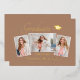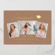 Beautiful 3 photo graduation announcement cards. Featuring modern text with elegant calligraphy script in your choice of gold, silver or rose foil. Your photos are thinly edged in white trim for that extra "Pop". The design is complimented with a background of light terracotta - earth tone. The back of the card offers a personalised announcement text space for that special graduate. To see more items like this, visit my store here at "www.Zazzle.com/LakeViewCardCo". Thanks