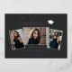 Beautiful 3 photo graduation announcement cards. Featuring modern text with elegant calligraphy script in your choice of gold, silver or rose foil. Your photos are thinly edged in light grey trim for that extra "Pop". The design is complimented with a background of dark platinum grey colour and regal black. The back of the card offers a personalised announcement text space for that special graduate. To see more items like this, visit my store here at "www.Zazzle.com/LakeViewCardCo". Thanks