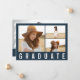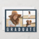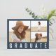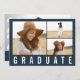 Modern minimal 3 photo graduation simple contemporary announcement card. Navy blue and white design.