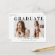 A modern black and white graduation party photo invitation postcard. This minimalist grad party invite features a trendy script font and space to add 3 photos. THE SAMPLE PHOTO IS NOT INCLUDED. REPLACE WITH YOUR OWN PHOTO BEFORE ORDERING.