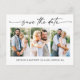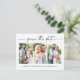 Modern 3 Photo Minimalist Ink Script Save The Date Postcard