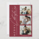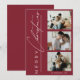 Modern 3 Photo Minimalist Red Christmas Script Holiday Card