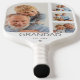 A modern photo collage pickleball paddle, perfect as a gift for Fathers day, birthday, christmas or any other occasion. The paddle features 3 photos, a bold font in grey which reads 'GRANDAD' (can be changed to any relative) and 'EST: 20XX.