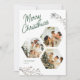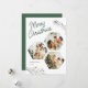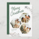Modern 3 Photos Christmas Greeting Holiday Car. Simple image change with your own. Personalise the card with your custom greeting, family name, and year for a personal touch. The back of the card showcases your heartfelt message in white text set against a deep green background with the snowflakes falling.