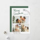 Modern 3 Photos Christmas Greeting Holiday Car. Simple image change with your own. Personalize the card with your custom greeting, family name, and year for a personal touch. The back of the card showcases your heartfelt message in white text set against a deep green background with the snowflakes falling.