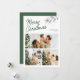 Modern 3 Photos Christmas Greeting Holiday Car. Simple image change with your own. Personalize the card with your custom greeting, family name, and year for a personal touch. The back of the card showcases your heartfelt message in white text set against a deep green background with the snowflakes falling.