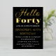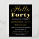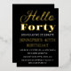 Hello Forty. Modern, QR Code, black and gold foil, stylish 40th birthday invitations. You can personalise it with your own details.