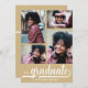 Add your favourite four photos to the front of these graduation party invitations featuring graduate and class of in chic lettering on a gold background. MORE designs and colours done in our store including invitations, save the date cards and postcards.