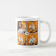 Create your own photo collage with 4 square images in a grid each with thin navy blue borders on a white background. A white circle with a navy border overlaps the corners of the 4 photos at their center and features your monogram in a dark blue serif font. Add your initial and photographs in the sidebar to personalize it. The images and monogram appear on each side of the mug. It's a cool way to display your square photos from your social media accounts. Also makes a great gift.