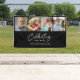 Honour the cherished life of a loved one with this beautifully designed funeral banner featuring a modern and elegant photo collage layout. The sleek black background creates a striking contrast that highlights four custom photos at the top, perfect for displaying beloved memories. Beneath the collage, graceful white script and serif typography read "Celebrating the life of" followed by your loved one's name and dates of life, providing a heartfelt tribute. This funeral banner’s clean, sophisticated style adds a timeless touch to any funeral, memorial service, celebration of life, or remembrance event, offering a dignified and personal way to honour a loved one’s legacy.