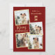 Capture all your favorite holiday memories with this fun and modern 4-photo polaroid-style Christmas design. The vibrant red backdrop and trendy vertical typography create a joyful and casual greeting that perfectly showcases your family’s festive spirit