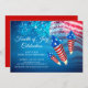 Modern fireworks fourth of July invitation featuring fireworks & american flag display set on a blue background. Flip the back of our summer patriotic holiday invite over to view a matching back. Stylish invitation for a memorial day barbecue, 4th of July cookout, labour day party, or any patriot themed party.