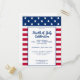 Modern 4th of July celebration party invitation postcard. Personalize this 4th of July party invitation template for your independence day celebration with friends and family. Features patriotic red white and blue stripes and stars.