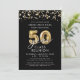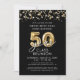 Modern 50 Year Class Reunion Black Gold Streamers Invitation