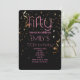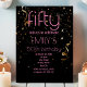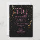 Modern 50th Birthday Black Background Gold Confetti Overlay Pink Text Invitation