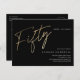 Modern minimalist 50th birthday party invitation features stylish faux gold foil number handwritten script Fifty and your party details in classic serif font on black background colour, simple and elegant, great surprise adult milestone birthday invitation for men and women. the black background colour can be changed to any colour of your choice.