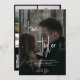 Elegant trendy casual hand lettered signature script photo BUDGET affordable wedding invitation PAPER FLYER with white text and black overlay featuring big bride's and groom's names calligraphy script. Personalised it with your photo on the front side and with 4 photo collage and your scanning QR CODE to website on the back side. ++++++++++++++++++ You can change colours of text and background after selecting CUSTOMIZE further option. ++++++++++ This timeless wedding invite is suitable for modern style casual wedding ceremonies and receptions.
