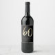 Modern 60th Birthday Black & Gold Script wine label features stylish faux gold foil number in handwritten script. Simple and elegant, great surprise adult milestone birthday decor for men and women. The black background colour on the back can be changed to any colour of your choice.