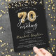 Modern and festive 70th birthday party invitation featuring the title You Are Invited to a Party 70 YEARS IN THE MAKING in calligraphy script typography and faux metallic gold balloon numbers and gold streamers and confetti and white lights in your choice of background colour (shown in black). ASSISTANCE: For help with design modification or personalisation, colour change, transferring the design to another product or if you would like coordinating items, contact the designer BEFORE ordering via Zazzle Chat or email makeitaboutyoustore@gmail.com.