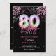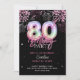 Modern 80th Pink Foil Balloon Fireworks Birthday Invitation