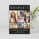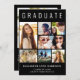 Elegant and modern black graduation announcement card to celebrate the graduate featuring "GRADUATE" across the top in large white typography, a seven photo collage and his or her name, class year and school in modern white typography. On the back add an additional photo and a personalised message.