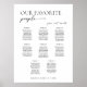 Modern Script Wedding Seating Plan. Our Favourite People sign. Personalised Simple Minimalist Seating Chart for 80 guests (8 tables). Just click the customise further link, shown under the text personalisation area on the right, and choose your custom colour background. This sign poster template makes it fast and easy to create stunning additions to your wedding decor. Signs can be enlarged, there are many sizes to choose from, as well as options for custom framing and matting.