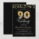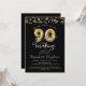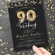 Modern and festive 90th birthday party invitation featuring the title You Are Invited to a Party 90 YEARS IN THE MAKING in calligraphy script typography and faux metallic gold balloon numbers and gold streamers and confetti and white lights in your choice of background colour (shown in black). ASSISTANCE: For help with design modification or personalisation, colour change, transferring the design to another product or if you would like coordinating items, contact the designer BEFORE ordering via Zazzle Chat or email makeitaboutyoustore@gmail.com.