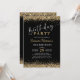 Modern 90th Black Gold Glitter Birthday Any Age Invitation