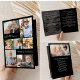 Celebrate a cherished life with this beautifully designed black and white funeral program, thoughtfully created to honour lasting memories. The front cover features a modern photo collage layout to showcase treasured moments alongside a simple and elegant "In Loving Memory" heading and your loved one's name and dates of life. Inside, the clean layout offers sections for an obituary and order of service, or any text of your choice, all set against a sleek black background for a timeless, refined look. The back includes space for a prayer, poem, quote, or personal tribute, complemented by an additional photo. Perfect for a funeral, memorial service or celebration of life ceremony, this funeral program combines warmth, clarity, and elegance to provide a heartfelt keepsake for family and friends.