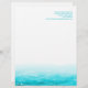 Beautiful blue painted sea with graphic waves sparkle white overlay wedding or everyday letterhead. A beautiful beach, coastal ocean inspired, contemporary, letterhead featuring a unique stylised, hand watercolor sea, on a white background. Beach / ocean feel letterhead. Edit this letterhead with your name and contact details. Uniquely designed and painted by Sarah Trett.