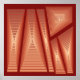 Mid Century Modern abstract composition of pyramid shapes with a 3-d effect in shades of copper on a deep rust background - digital design