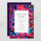 Elegant abstract art flat save the date card in dark blue which can be personalised with the inclusion of the bride and groom's names and the all important wedding date. The design is a lush pink, turquoise, black and white. The design is abstract, modern and bold.