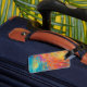 Abstract Artwork design in bright yellow, orange, blue, green, pink with custom INITIALS in orange. Easy to personalise text, text colour, font. Great Travel Accessory for ANY Colourful Personality, Trip or Event at ANY age! Modern, Colourful, Fun. Mix and match entire Abstract Art Collection by TMCdesigns.