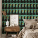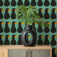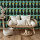 Modern Abstract Bird Pattern Bold Black & Teal Wallpaper