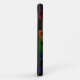 This iPhone case features a colourful abstract rainbow watercolor and ink painting on a black background.