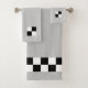 Modern Abstract Black & White Chequered on Grey Bath Towel Set
