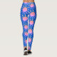 These modern cool leggings have an abstract playful pink sun pattern on a vibrant blue background reminding of a summer sunset.