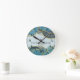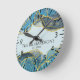 Modern Abstract Blue Gold Agate Stone Geode Ink Round Clock