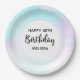 Modern Abstract Blue & Purple Watercolor Birthday Paper Plate