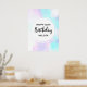 A birthday poster with a modern abstract watercolor design. Blue and purple colours mix and mingle together in a soft pastel coloured abstract pattern. A soft misty dreamy feel to this design. Artistic, stylish and beautiful. A circle layered over top with your text inside.