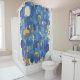 Modern Abstract Blue Raindrops Gold Accents Shower Curtain