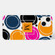 A bright and bold design of abstract circles in shades of pink, teal and orange. A centred monogram on an orange square is available to customise the design. Stylish and eye catching.