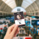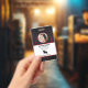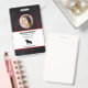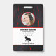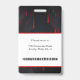 Company employee identification badge with templates created for you. Background is a modern abstract in red, white, and black.
