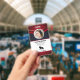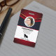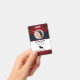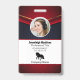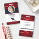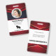 Company employee identification badge with templates created for you. Background is a modern abstract in red, white, and navy grey.