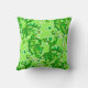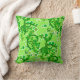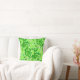 Throw pillow in a Mid-Century Modern abstract pattern of spirals and dots, with the look of confetti tossed in the air, in shades of lime and emerald green, accented with white, against a light lime green background