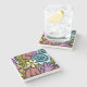 The coasters are gorgeous, a quality feel and heavy weight. They look like a precious archeological find. A rustic stone juxtaposed with a modern floral black and white print. I like the way the print goes slightly imperfect on the cut stone edges giving them a kind-of natural beauty.