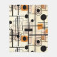 Dynamic black drawing, geometric shapes, simple colours