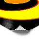 Abstract and colorful geometric trendy design with retro style, yellow and orange circles on black background