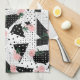 Modern Abstract Dots and Pink Flowers Tea Towel